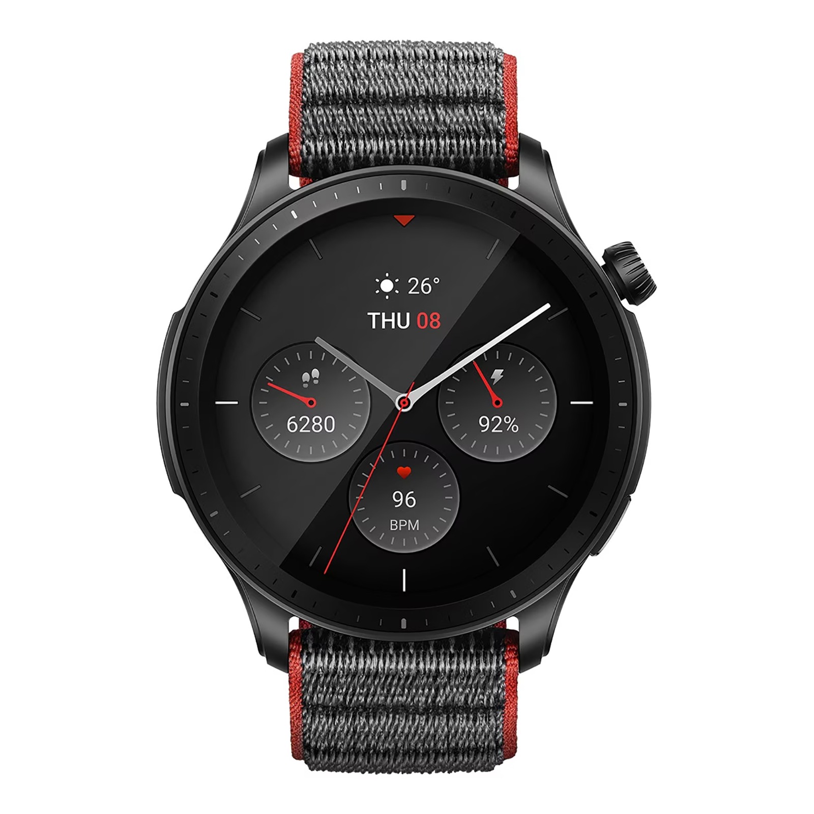 Sensores: frecuencia cardíaca, medición de oxígeno en sangre (SpO₂), acelerómetro, giroscopio, altímetro/barómetro, sensor geomagnético, sensor de luz ambiental